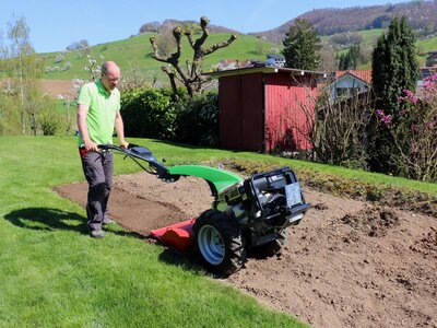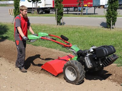 Die Rapid Bodenfräse zerkleinert Erdschollen, fräst Böden fein und lockert diese für den Aufbau. Die genial einfache und robuste Konstruktion besticht durch die Möglichkeit, dass die Fräs-Drehrichtung gegen die Fahrtrichtung gestellt werden kann. Das vereinfacht das Führen der Geräte in harten Böden entscheidend