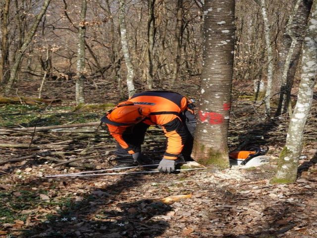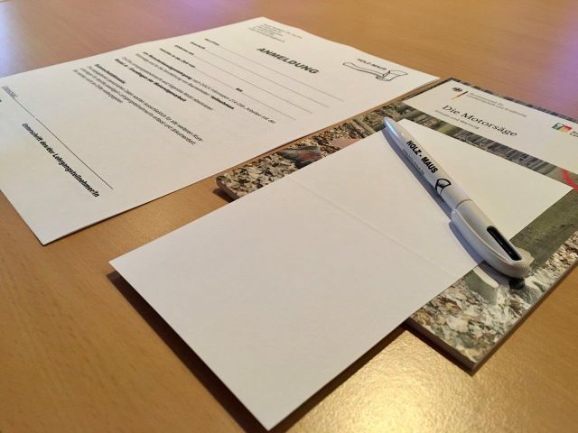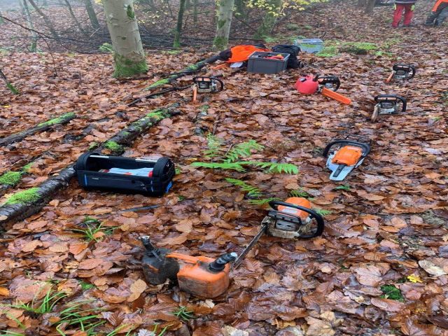 - PSA: Schnittschutzhose, Arbeitsschuhe mit Schnittschutzeinlage, Arbeitshandschuhe und Forsthelm